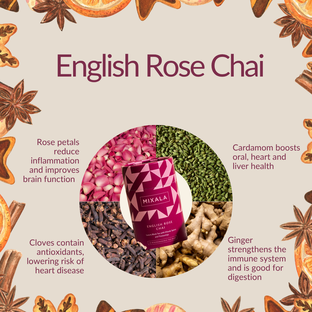 Luxury chai with masala spices and rose flavouring.